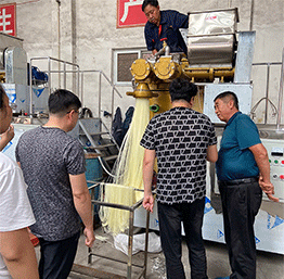 FJ-25型自熟米線機,是我廠生產的新一代食品機械,生產時大米不需粉碎磨面,只要將大米浸泡洗凈入機即可生產,自動化程度高,操作簡單,l人即可生產,自動加料、一次自熟成型。該型米線機可生產米粉、米線、年糕等產品。加工食品外表光滑,厚薄、粗細均勻可調,筋軟適度,有彈性,口感柔軟、味道純正。 ![]()